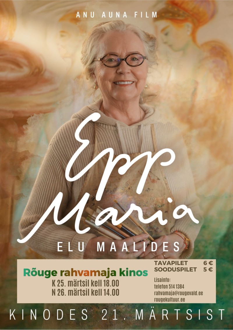 Kolmapäeval, 25. märtsil kell 18.00 ja neljapäeval, 26. märtsil kell 14.00 näitame Rõuge rahvamaja kinos Eesti dokumentaalfilmi "Epp Maria. Elu maalides" (2026).
