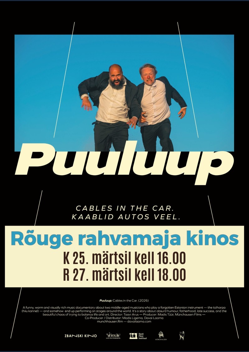 Kolmapäeval, 25. märtsil kell 16.00 ja reedel, 27. märtsil kell 18.00 näitame Rõuge rahvamaja kinos Eesti muusikadokumentaali "Puuluup - kaablid autos veel" (2026).