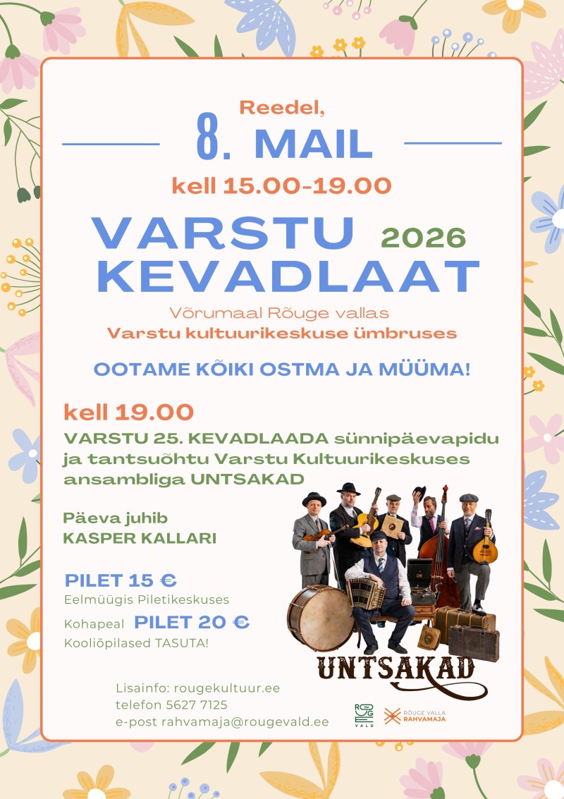 Laata korraldab Rõuge Valla Rahvamaja. Lisainfot Varstu kevadlaada kohta küsi tel 5627 7125 või rahvamaja@rougevald.ee