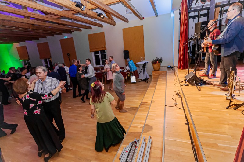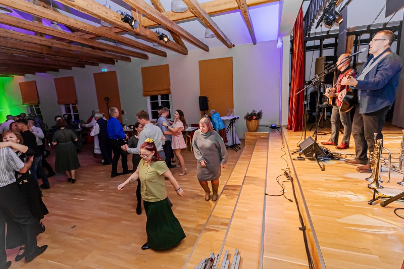 Pidu jätkus ansambli Tuulest Viidud hoogsa tantsumuusika ja pillimängu saatel. Ansambliaegade meenutuseks tegid üllatusetteaste ka vendade Paegliste eestvedamisel Mõniste Kormoranid.