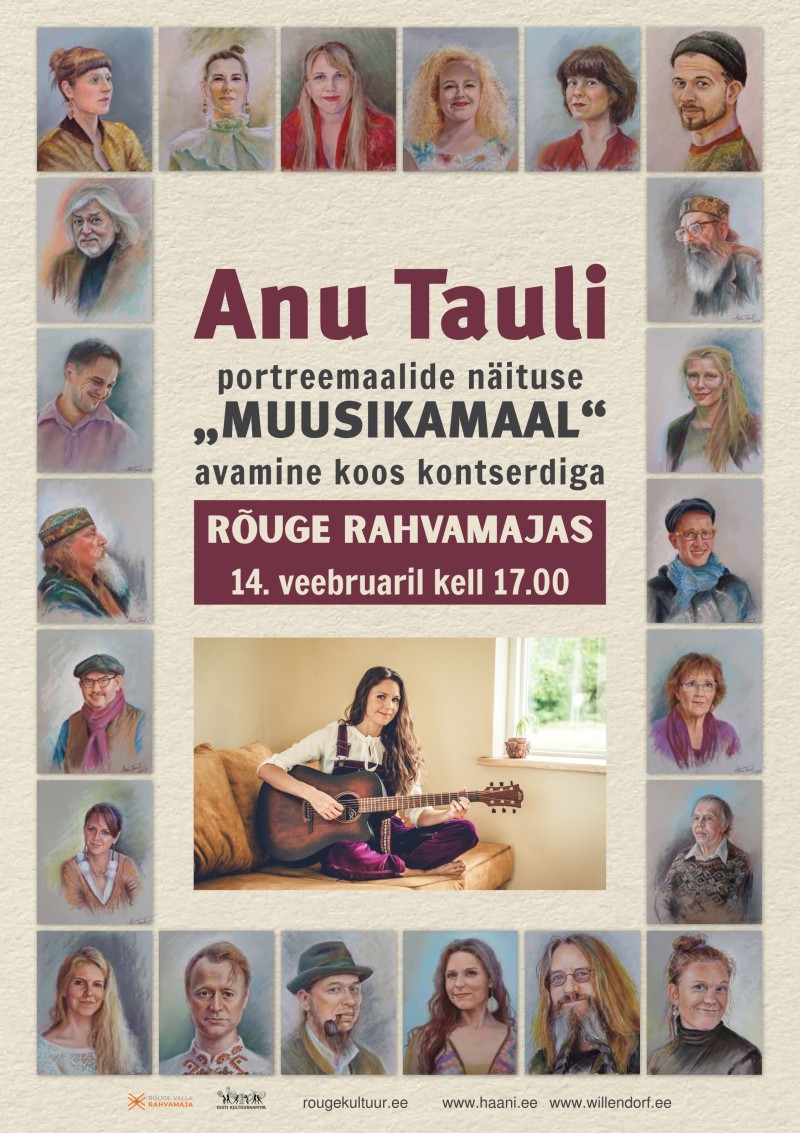 Laupäeval, 14. veebruaril kell 17 avab Anu Taul Rõuge rahvamajas portreemaalide näituse "Muusikamaal". Näituse avamisele järgneb kontsert.