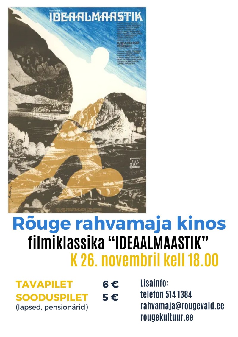 Novembrikuu kinopäevadel tuleb kolmapäeval, 26. novembril kell 18.00 näitamisele Peeter Simmi 1980. aastal linastunud mängufilm „Ideaalmaastik“. Paljud on sellest filmist kindlasti kuulnud, aga pole ehk ise näinud. 2025. aasta oktoobri keskel taas-esilinastus “Ideaalmaastik” mainekal Lumière’i filmifestivalil Lyonis, Prantsusmaal, festivali programmis Lumière Classics: Treasures & Curiosities taastatud versioonina. Nüüd on ka Rõuge rahvamaja kinolinal see taastatud film, mida kõik koos vaadata. Film kestab üks tund ja 37 minutit.