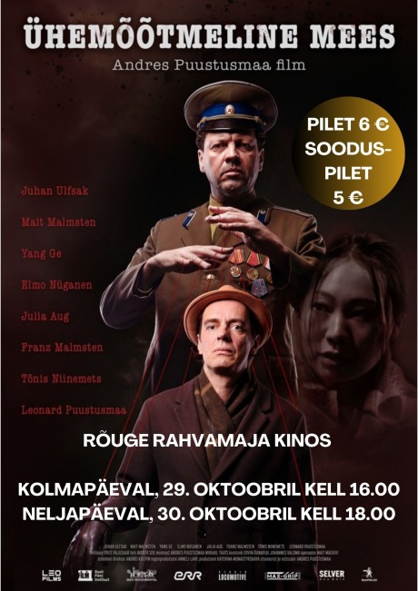 Oktoobrikuus näitame Rõuge rahvamaja kinos kahel erineval ajal Eesti põnevusfilmi „Ühemõõtmeline mees“. Kinoseansid leiavad aset kolmapäeval, 29. oktoobril kell 16.00 ja neljapäeval, 30. oktoobril kell 18.00.