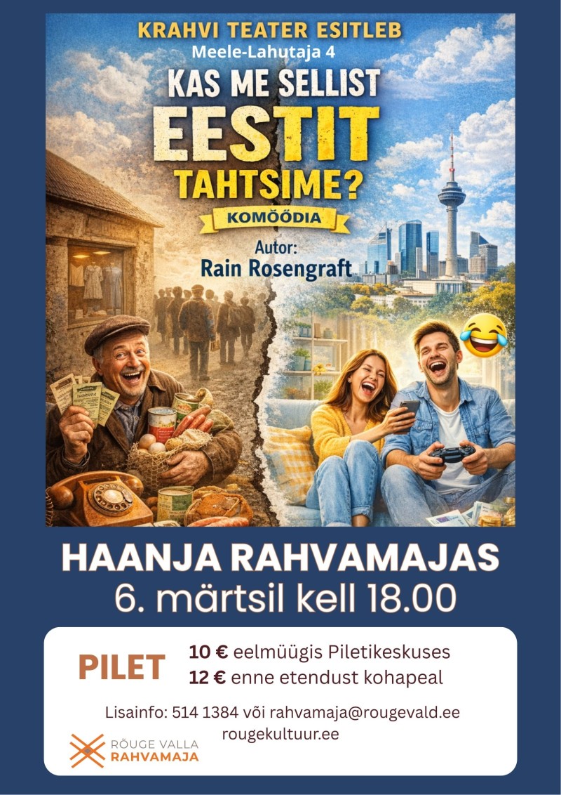 Krahvi teater mängib oma populaarset etendus "Kas me sellist Eestit tahtsime" reedel, 6. märtsil kell 18.00 Haanja rahvamajas.