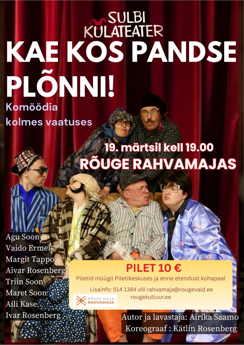 Neljapäeval, 19. märtsil kell 19.00 kolib Sulbi külateater kõigi oma hooldekodu asukatega Rõuge rahvamajja, et keset teatrikuud tuua lavale aegumatu komöödia „Kae kos pandse plõnni!"