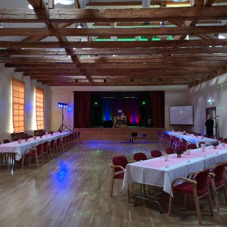 - Rahvamajal on suur saal ja mõned kõrvalruumid.