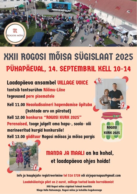 - kell 12.00 konkurss “ROGOSI KURK 2025” - perenaised, tooge julgelt oma hapu-, soola- või marineeritud kurgid konkursile!