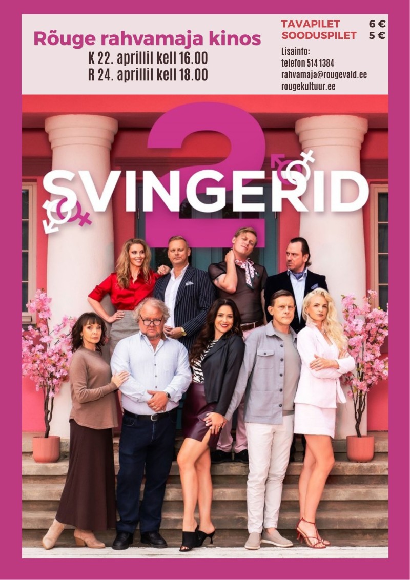 Aprillikuu kinopäevad Rõuge rahvamajas toimuvad 22.-24. aprillini. Kolmapäeval, 22. aprillil kell 16.00 ja reedel 24. aprillil kell 18.00 näitame Eesti komöödiat "Svingerid 2" (2026).